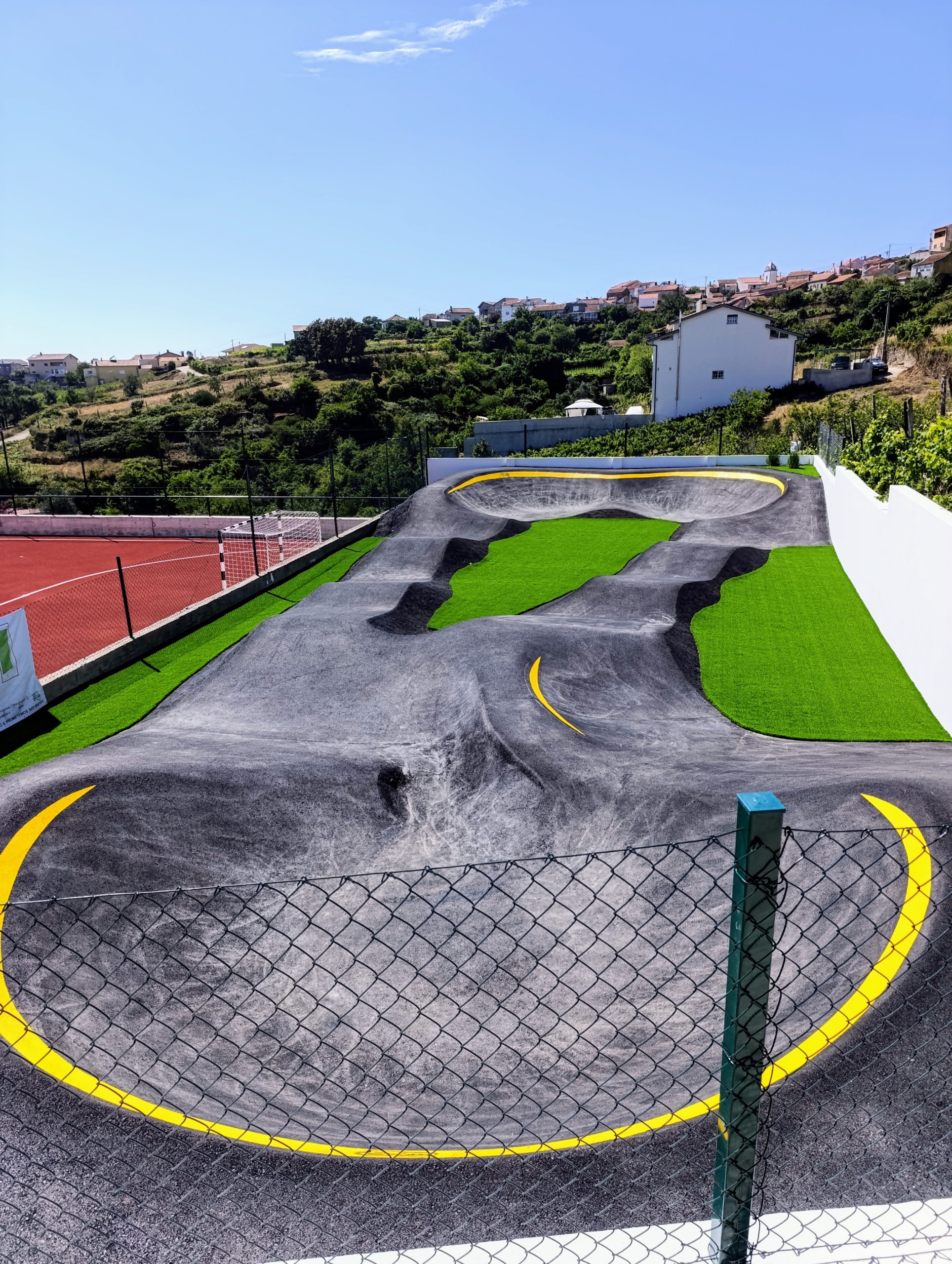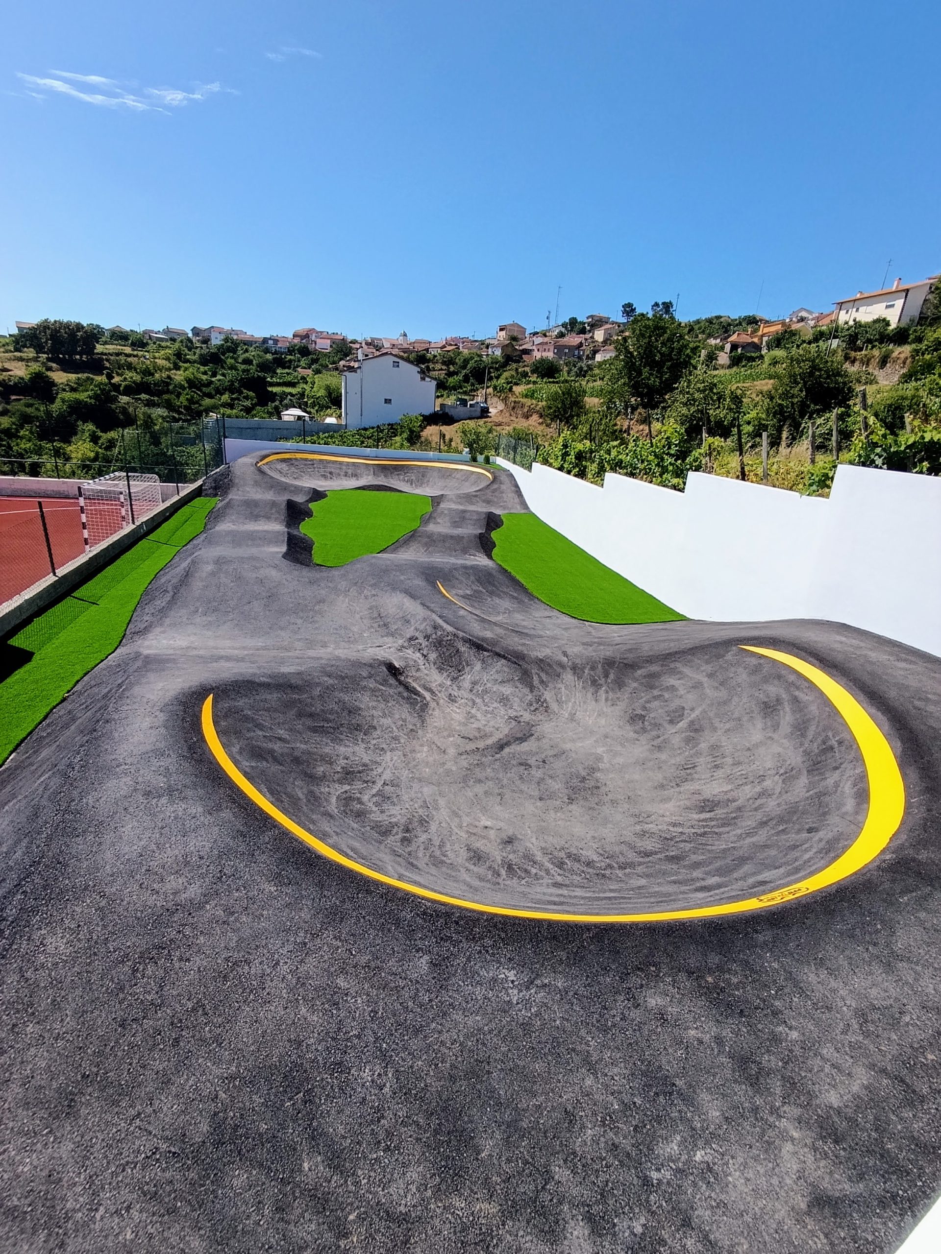 Uma “pumptrack” é um espaço de livre acesso, que tem um carácter fundamentalmente lúdico, no entanto é também um ótimo espaço para as escolas e clubes de ciclismo poderem treinar.